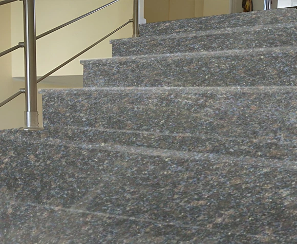 Honey Blue granite Staircase adds a captivating blend of warm honey and deep blue tones, bringing a sophisticated charm to any space. Its natural strength ensures durability against weathering, making it ideal for both interior and exterior applications. The polished surface enhances its rich color variations, while honed or textured finishes offer a more rustic appeal. Resistant to stains, moisture, and wear, it provides a long-lasting, low-maintenance solution. Elevate your walls with the timeless elegance and resilience of Honey Blue granite.