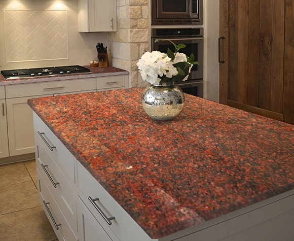Kondagattu Red granite countertops bring a warm and bold aesthetic to any space. Their deep red hues, enriched with natural patterns, create a visually striking appeal. Known for exceptional durability, they resist heat, scratches, and stains, making them perfect for daily use. The polished finish enhances their elegance, while honed or leathered options offer a more subtle charm. A Kondagattu Red countertop adds timeless beauty and strength to both residential and commercial interiors..