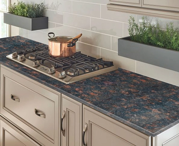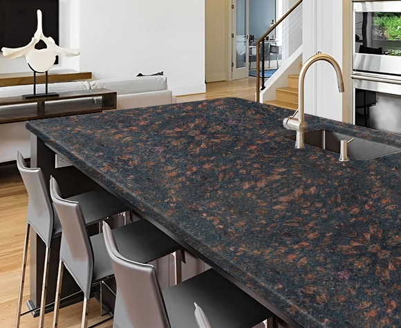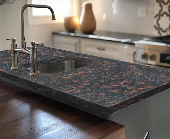 Tan Brown Deccan Granite Tabletops showcase deep brown and black tones with fine grain patterns, offering a rich and grounded aesthetic. Known for its durability, this granite is heat, scratch, and stain resistant—perfect for daily use in dining, office, or accent tables. The polished finish brings out the depth of color and texture, adding a touch of refined luxury to any space. Whether in a modern or traditional setting, it combines strength with timeless elegance. Choose Tan Brown Deccan for a tabletop that stands the test of time.