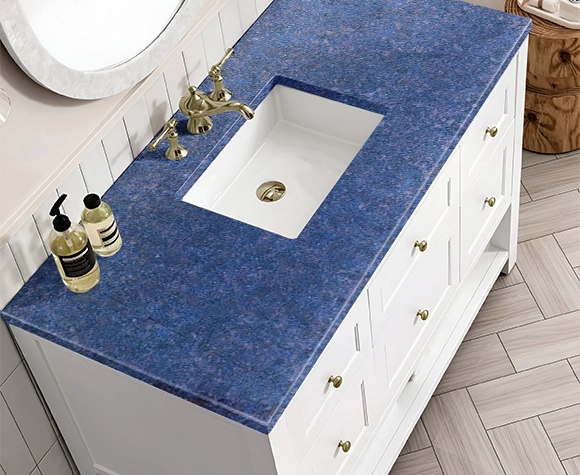 Teja Blue granite Bathroom Vanities enhances spaces with its rich blue hues and natural patterns. Its durability and weather resistance make it an excellent choice for both interior and exterior applications. The unique color variations add depth and character, creating a visually striking statement. With a polished, honed, or textured finish, it complements both modern and traditional designs. Teja Blue Bathroom Vanities is a perfect blend of strength and elegance, ensuring lasting beauty for years to come.